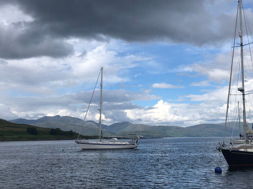 This last week has been full of adventure and new places. I was joined by Crispin in Southampton airport and we took a flight to Glasgow and onward taxi back to Linnhe Marine, where Spellbinder awaited us, having enjoyed rather better weather than we had had in the South. Linnhe marine were excellent – thank you to Nick and his father for running such an excellent service. It’s a great place to leave a yacht.