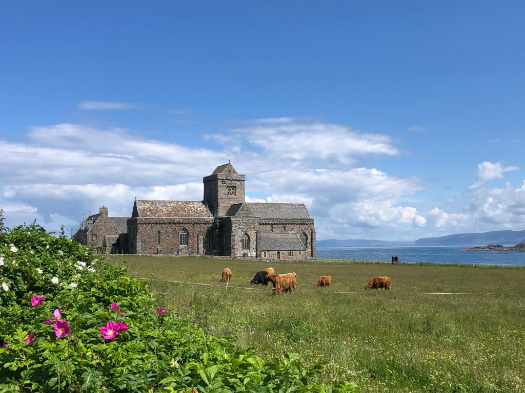 After a stroll around the hills above Tinker’s Hole, we threaded our way out of the anchorage through some narrow, rock-strewn anchorages towards Iona, where we anchored to explore the ancient abbey and its surrounds.