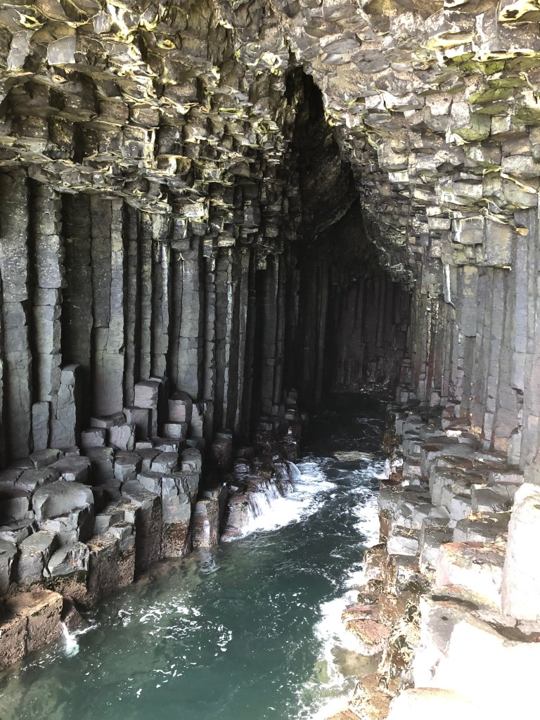 An hour or so north of Iona is the wonderful island of Staffa, full of columnar basalt, tame puffins and Fingal’s Cave, a spectacular sea cave named after the eponymous hero of an epic poem by the Scottish poet James Macpherson. It also inspired Mendelssohn’s concert overture The Hebrides. Anchoring off the island, we dinghied ashore and explored all of this, enjoying the spectacular rock formations.