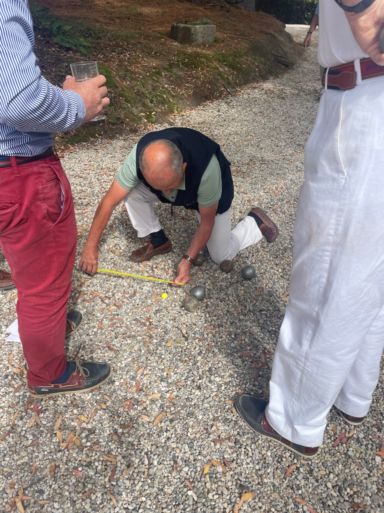 Jonty came on the ferry from Portsmouth for the final festivities, and Johnny and Lucy left on the morning ferry after them. We had a final invitation to take up from other French friends who invited us to their house overlooking the Rance to play boules, which ended up being very competitive!