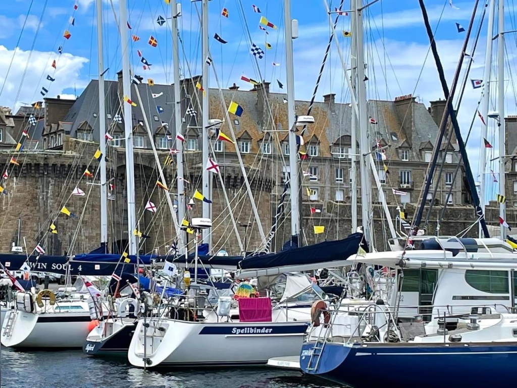 Spellbinder and some of the fleet dressed overall in Bassin Vauban, below the ramparts of Saint Malo