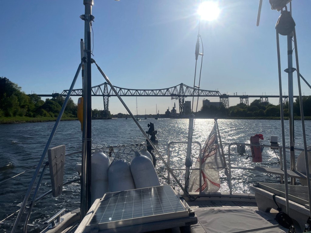 Rendsburg was very quiet – it was a German bank holiday, and unlike in the UK people weren’t out drinking and eating, We ate well at a marina restaurant and completed our canal transit the next day, arriving at Kiel.