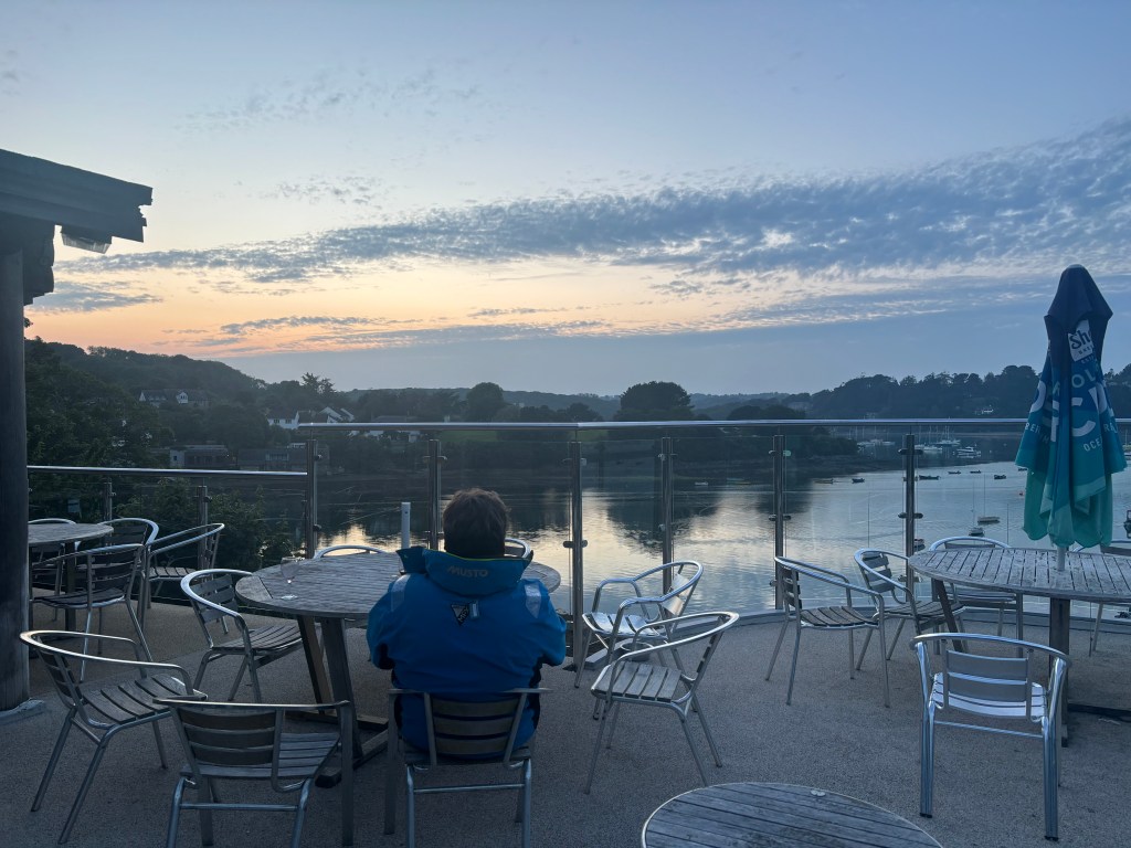 Next stop was the Helford River, which we reached after an enjoyable sail in fine weather. We picked up a buoy, enjoyed a pint at the Ferry Boat Inn, ate on board and looked at the sunset from the Helford River Sailing Club.