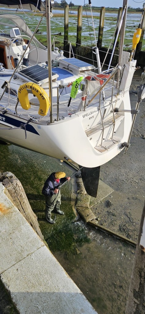 The usual maintenance has been calling though, and I took my usual annual trip to Bosham Quay to dry out and wash off. This time I was accompanied by my good friend Charles in his yacht Caris.