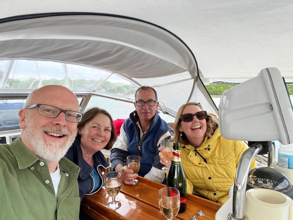 Sue and I also had a great weekend with neighbours Marcus and Jennie. We had lunch in Cowes before heading up the Beaulieu River beyond Buckler’s Hard and picking up a buoy. We enjoyed the tranquility up there and had a thoroughly sociable time.