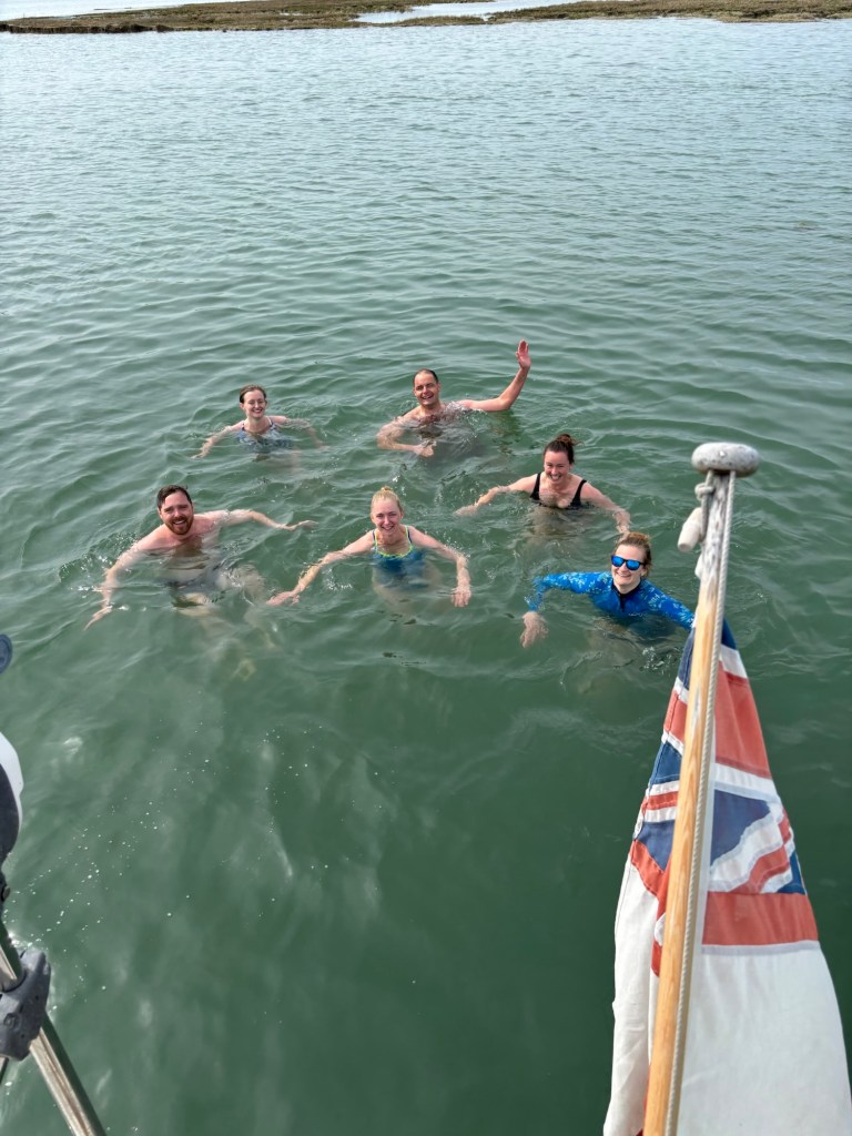 An early outing a short time later was with the Squadron Sailing Associates (SSAs) – from Cowes to Newtown Creek and Lymington. A few yachts gathered, and the SSAs were divided between them. I had the pleasure of having Jeremy, Georgina, Anastasia and Octavian aboard, and we enjoyed some great food and company. That the water temperature was 13 degrees did not seem to prevent swimming in Newtown Creek though, although I politely declined. When it is north of 25 degrees I begin to be tempted!