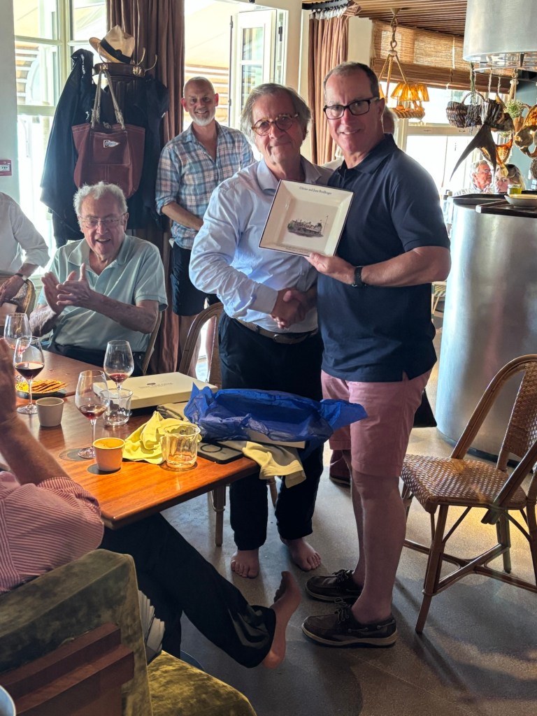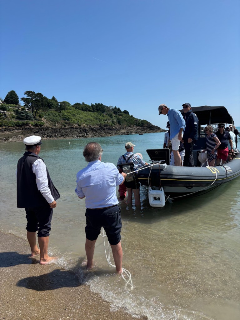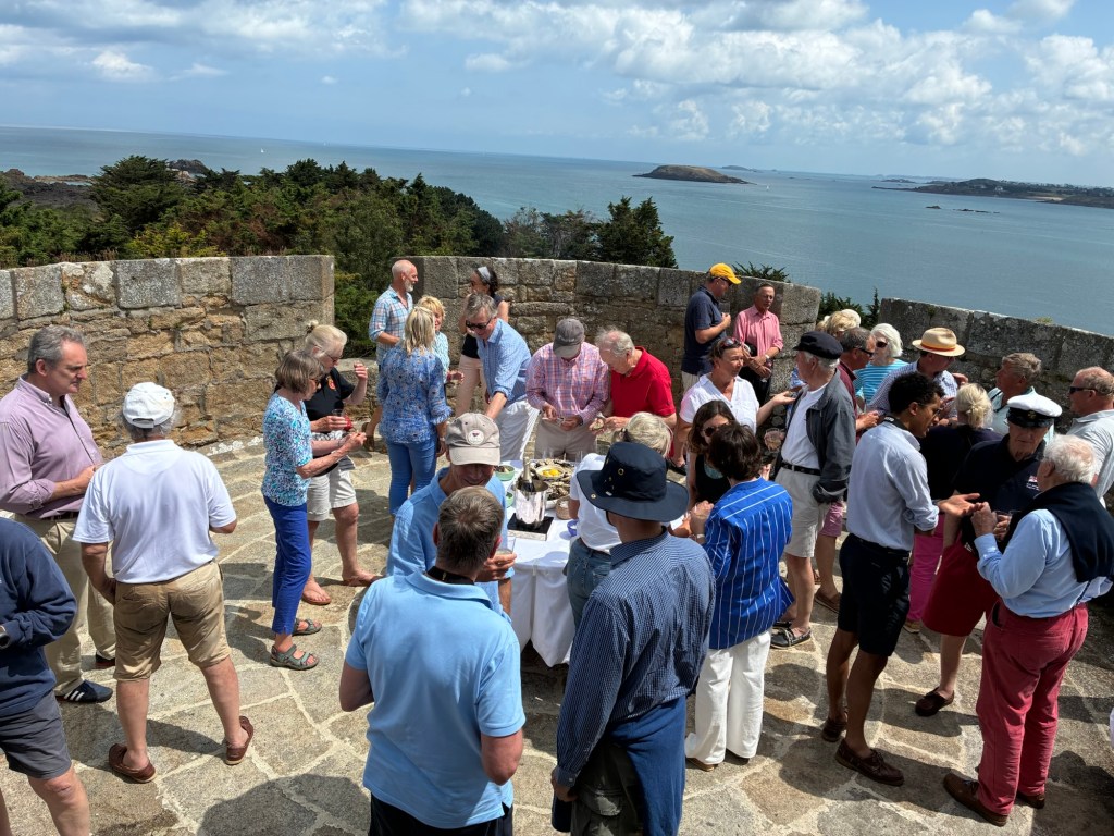The next day we experienced more generosity from the French – this time from another member, Géry, who owns a house and tower just west of Saint Malo. We anchored off his garden, and enjoyed a wonderful drink in the tower before dining under a marquee in his garden.