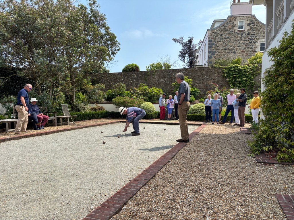 After berthing in Saint Peter Port we spent a couple of days socialising. Bash is friends with the Governor, and we had a very enjoyable drink with him and his wife in Government House. Friends Chris and Tory hosted a lunch the next day in their lovely Italianate house above Saint Peter Port. The food was ‘French rustic’ and utterly delightful. Some not very serious pétanque was also played.