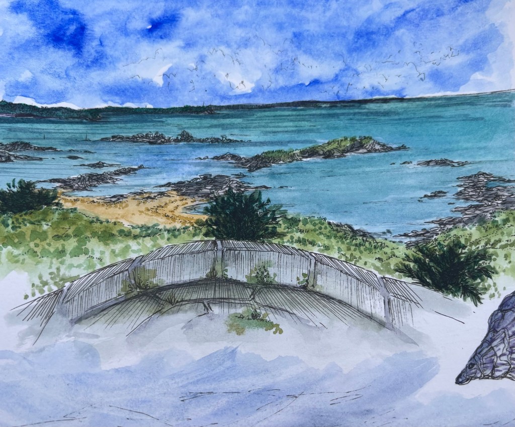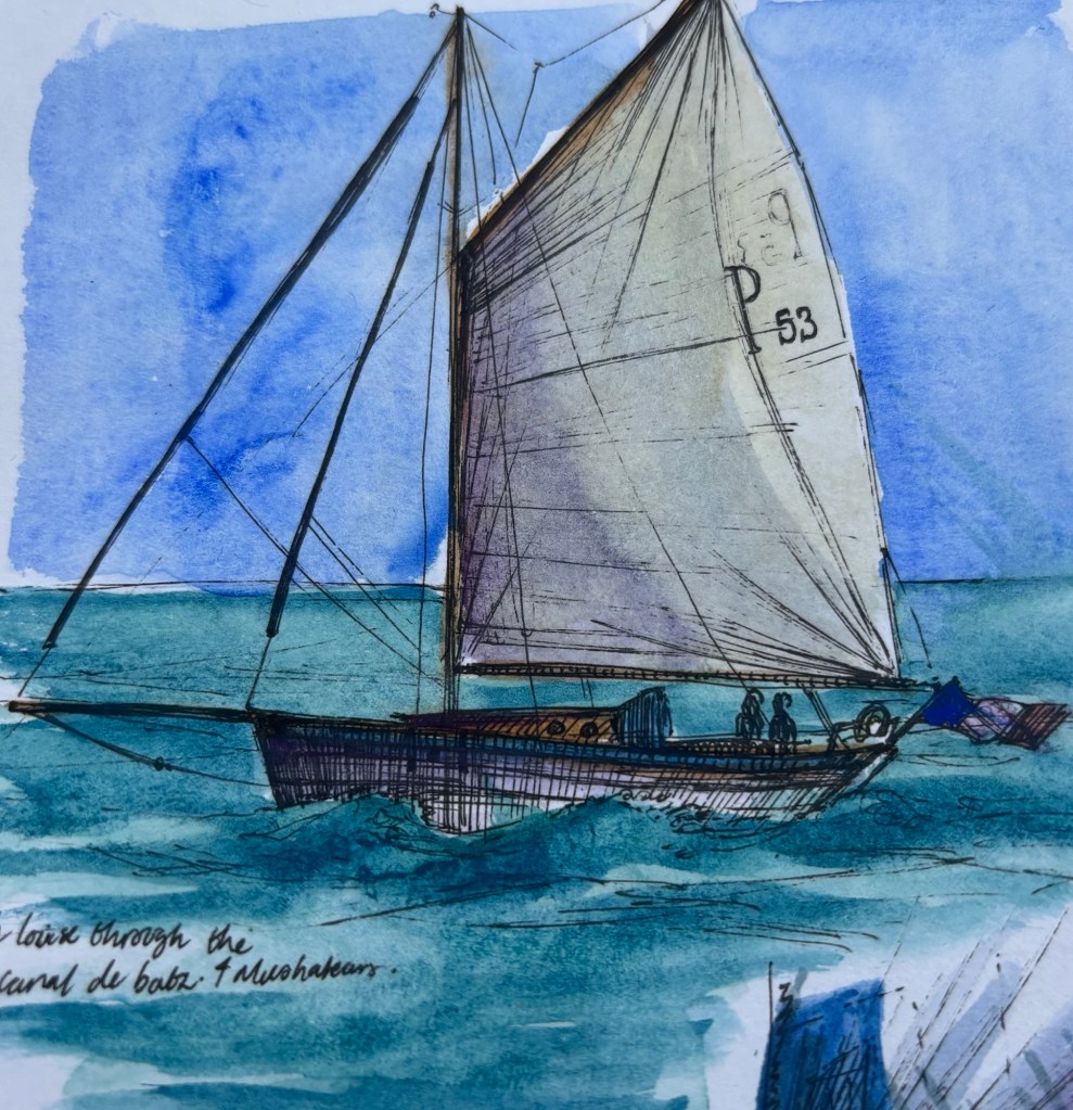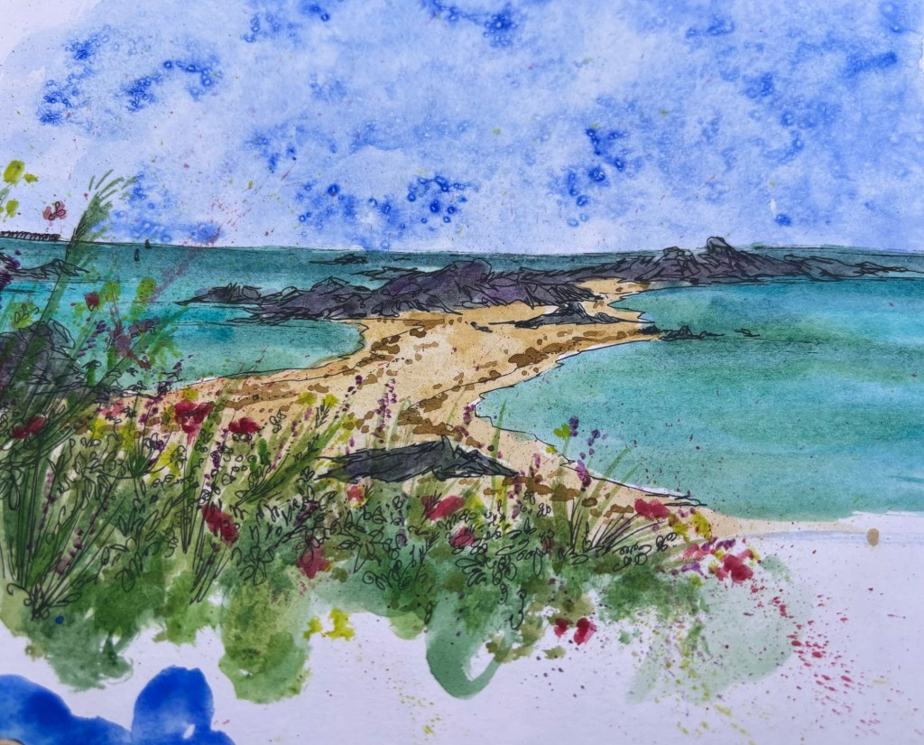 The next blog will relate our onward travels to Southern Brittany, from which I have just returned. In the meantime I leave you with some of Rose’s artwork, giving a different and talented view of the travels related above. All the works shown below are copyright Rose MacInnes.