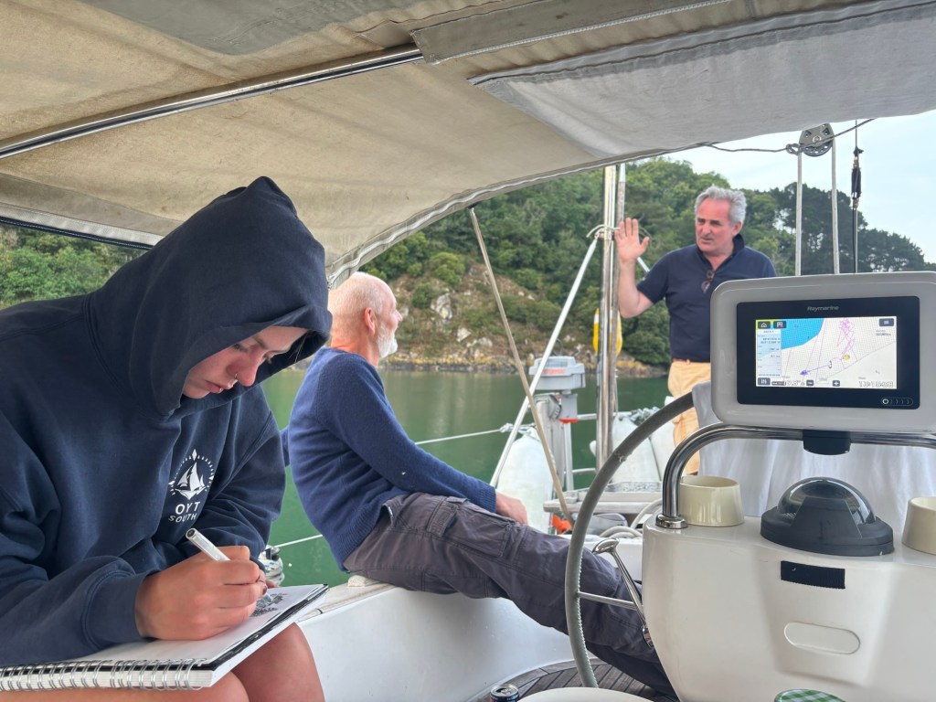 We continued west the next day in company with Olivier, François and Pierre-Luc in Olivier’s delightful Cornish Crabber Sarah Louise.